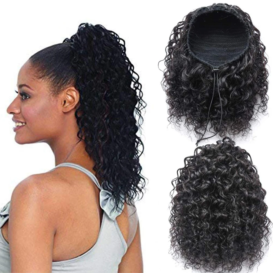 Кудрявый афро кудрявый конский хвост, человеческие волосы для наращивания, натуральные человеческие волосы, кудрявый прямой конский хвост, Верхний хвост