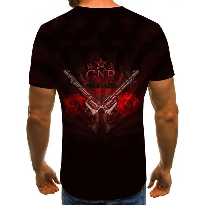 Новинка, модная футболка в стиле панк, футболка с принтом Guns N Roses, Мужская черная футболка, топы из тяжелого металла, платье с 3D-принтом оружия и розы, футболки в стиле хип-хоп