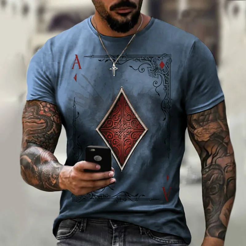 Летняя мода 2021, уличная футболка в клетку с 3D рисунком игральных карт, Мужской Свободный Повседневный пуловер оверсайз с коротким рукавом, футболка