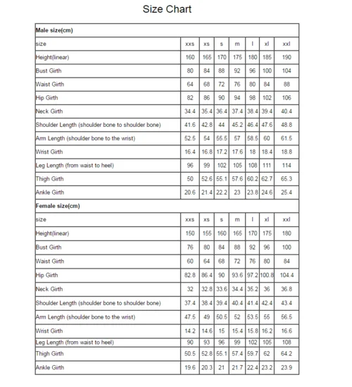 Размер: для мужчин: XS-XXL; Для женщин XS-XXL.
