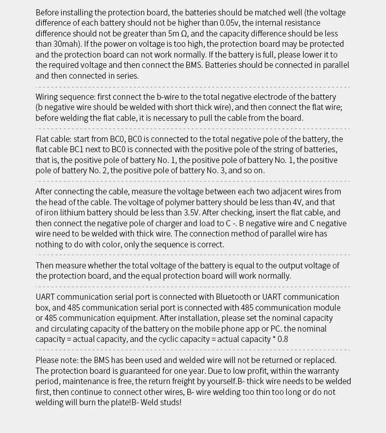2.Решение проблемы качества: бесплатная замена. Как только мы подтвердим, что это проблема качества, мы немедленно отправим вам хорошую замену BMS бесплатно.