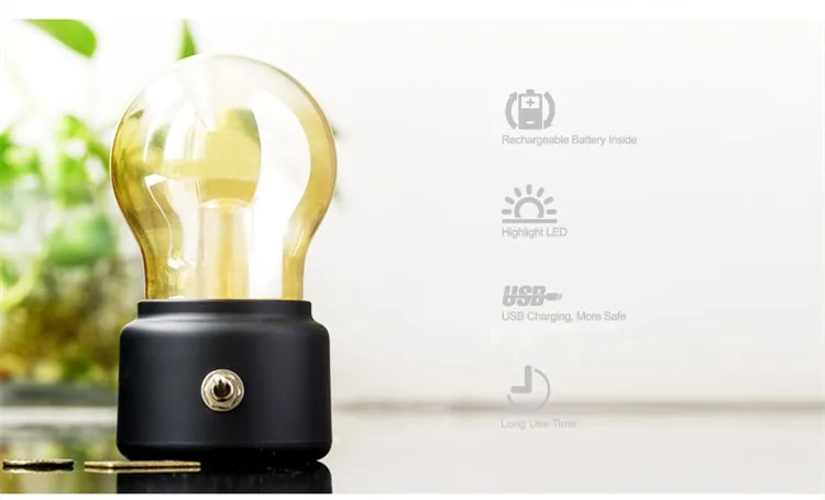 Винтажная лампа, ночник, перезаряжаемый светодиодный энергосберегаю...