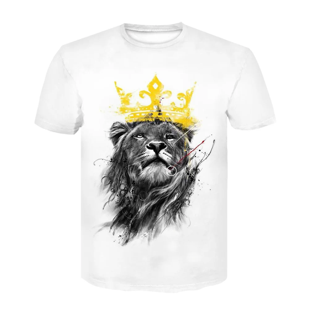 Футболка мужская с изображением Льва, коротким рукавом, 3d футболка, в стиле панк, модная уличная одежда, цвет белый