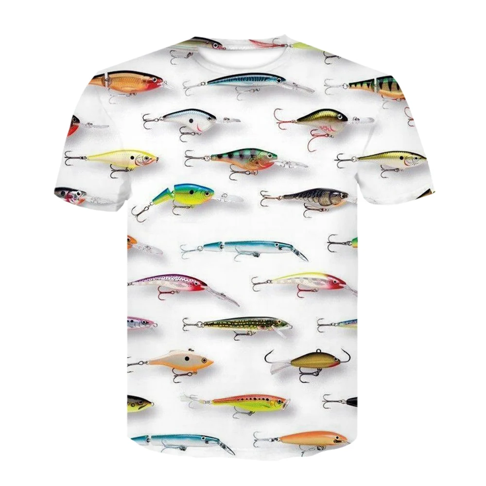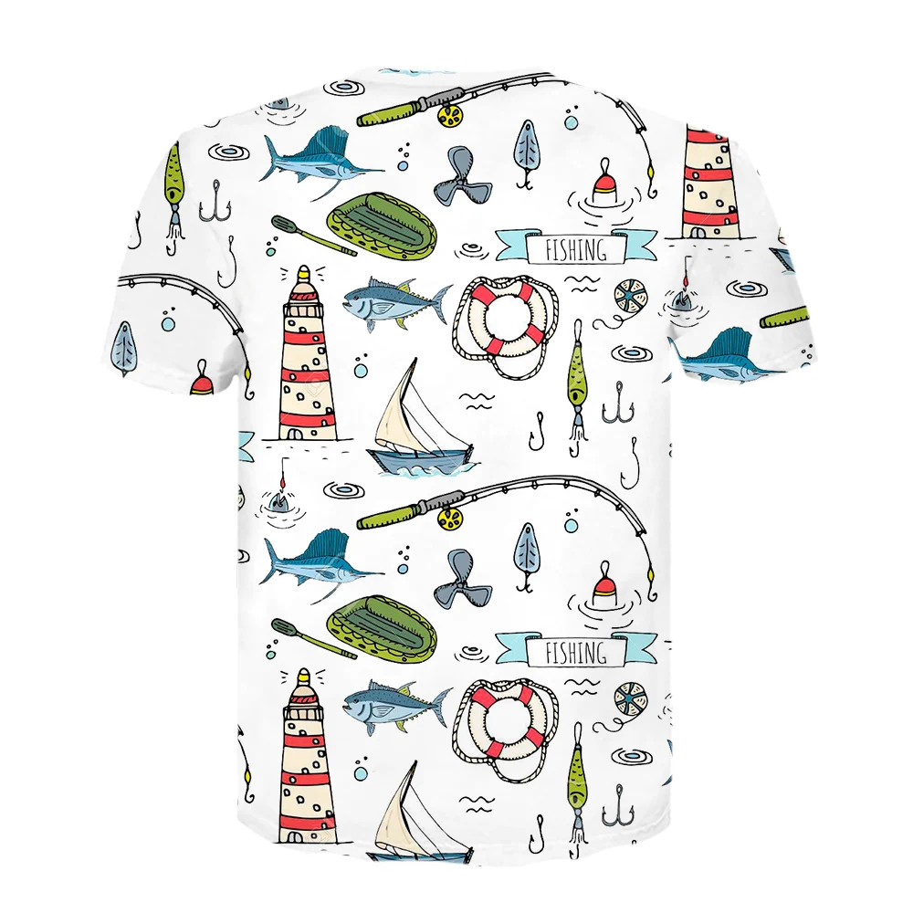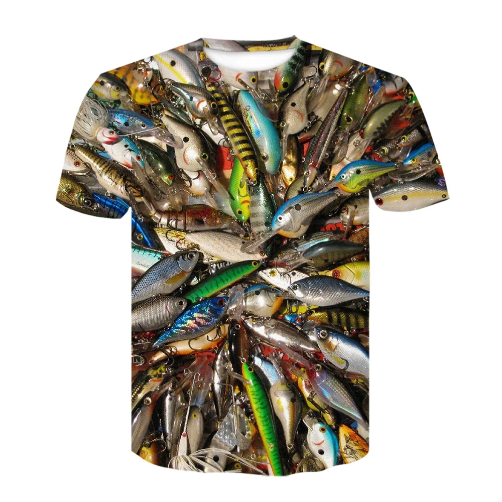 2021 мужские летние новые 3D много рыбы, Веселая футболка с О-образ...