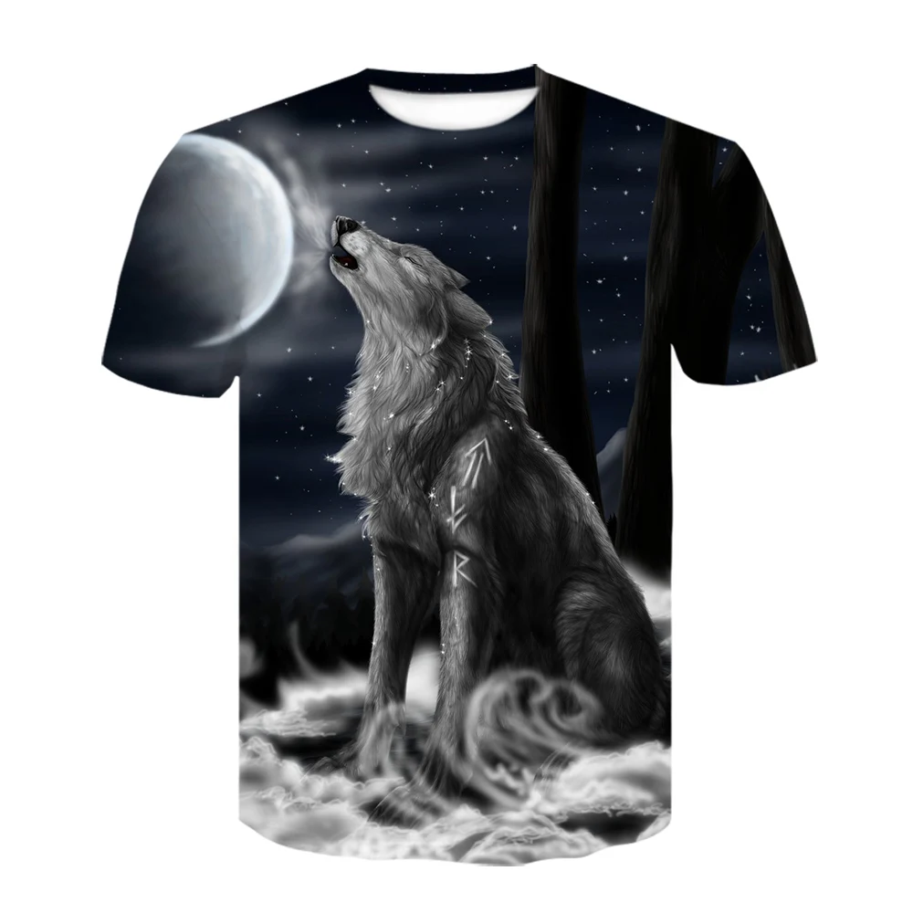 Новые летние 3D принтом дикого волка, футболка с изображением живот...