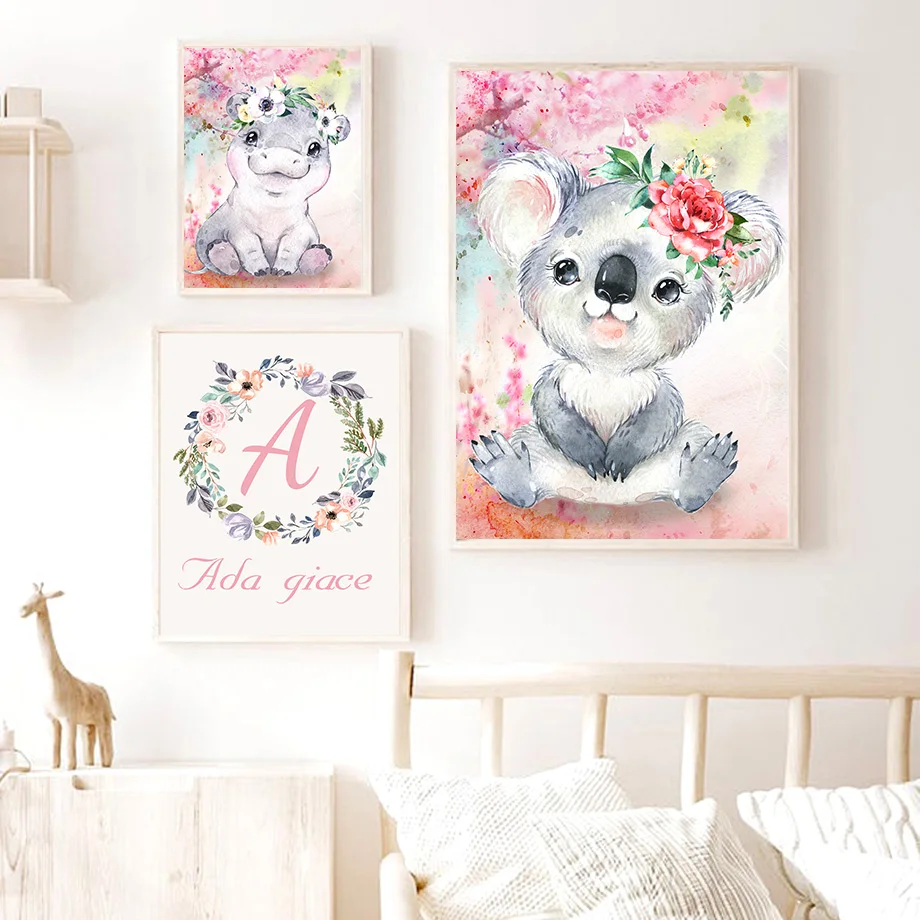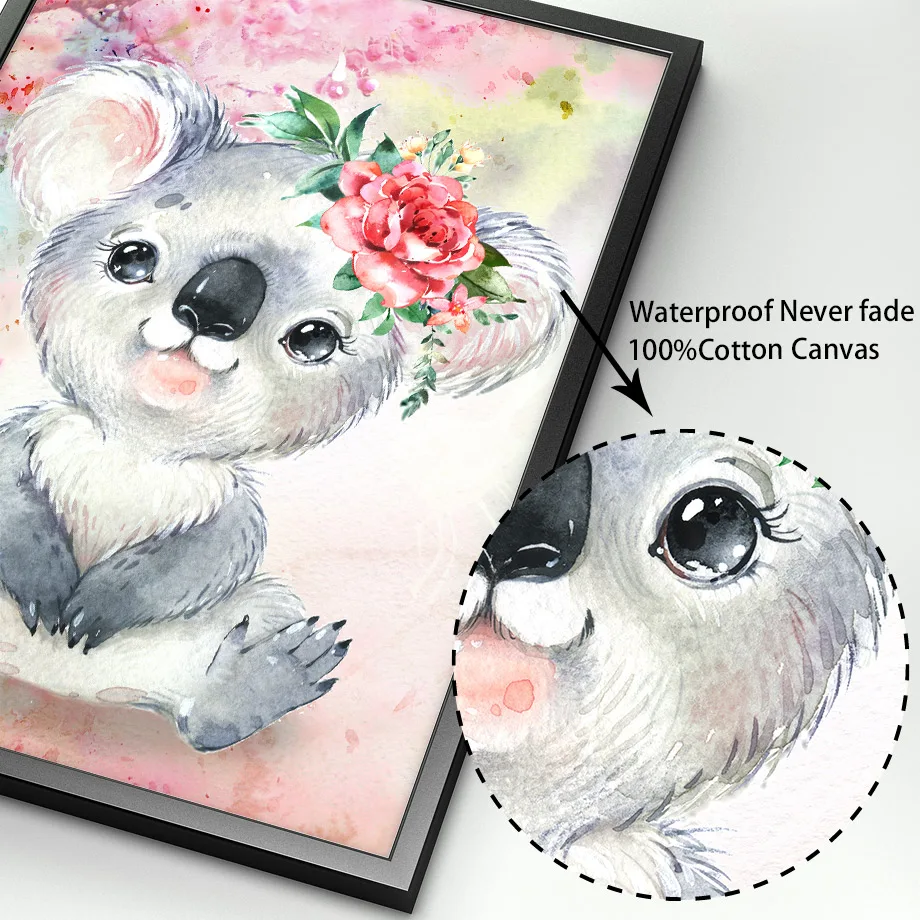 Настенные картины с принтом коала, кролик, тигр, Лев, жираф, розовы...