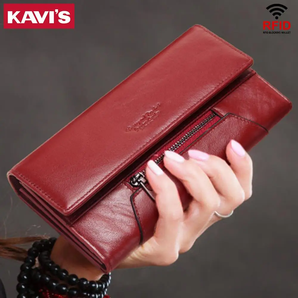 Женский кошелек из натуральной кожи KAVIS, большой вместительный кошелек, новинка, стильный женский кошелек, модные сумки для денег, на молнии, держатель для карт, удобный, Perse