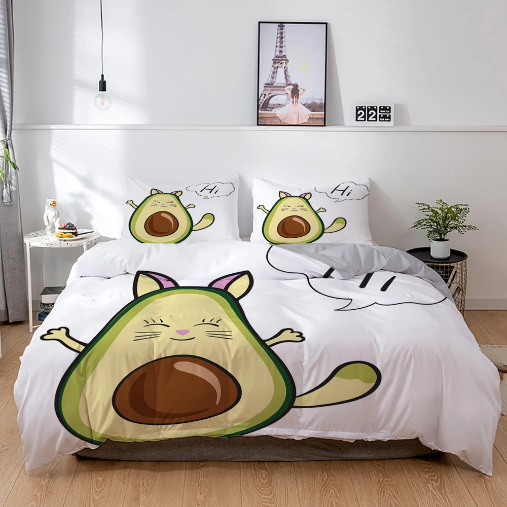 Комплект постельного белья Kawaii авокадо 3D, детское постельное белье с фруктами и мультяшными рисунками, милый комплект пододеяльникапододеяльника, наволочка для мальчиков и девочек