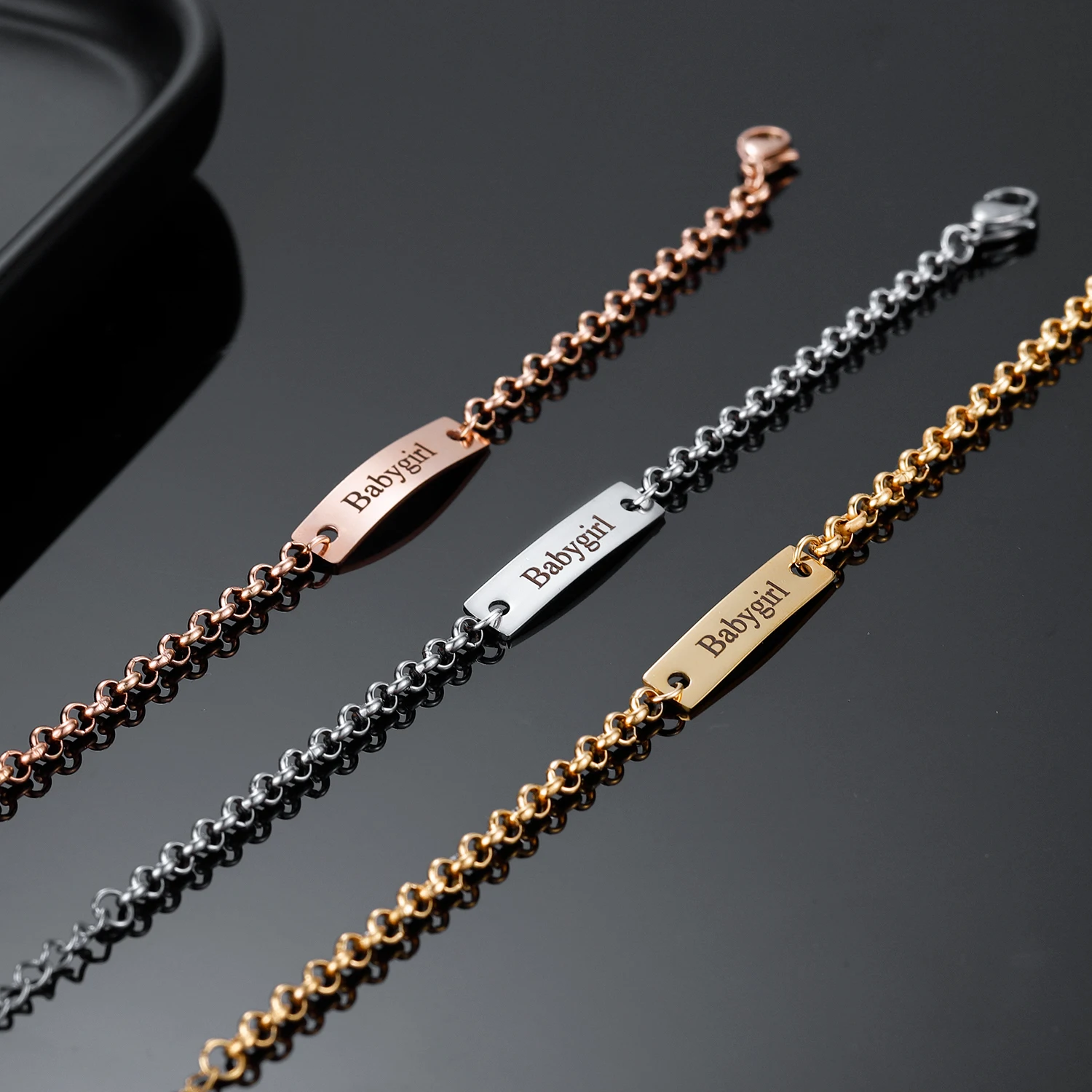 Bracelet personnalis nom de bb Bracelet rglable en acier inoxydable Bijoux pour bbs et tout-petits Garons et filles Cadeau d'anniversaire Enfants Infant Girls Love Angle en acier inoxydable Mre fille Enfant