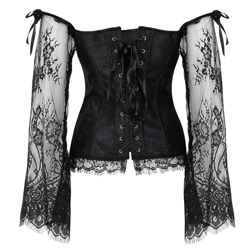 Кружевной Корсет в стиле стимпанк, винтажный корсет с длинными рукавами и открытыми плечами, корсет с цветочным рисунком