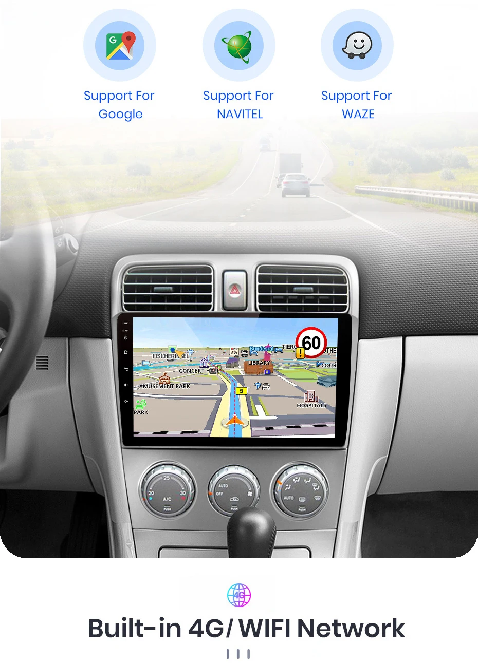 > Основные функции: Android 10,0 + 9 дюймов IPS Экран + 4 ядра 1,2 ГГц (восемь ядер 1,8 ГГц Dual Core опция) + флэш-память DDR3 1 Гб (2 ГБ/4 ГБ/6 ГБ/8 Гб опционально) + память 16 Гб (32 ГБ/64 Гб/128 Гб опционально) + WIFI (4G сеть опционально) + зеркальная связь + управление рулевым колесом + RDS/DSP (опционально)