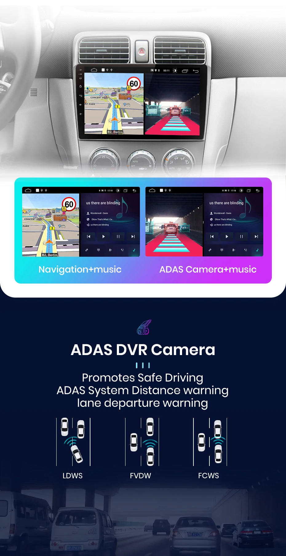 1. Голосовое управление AI: Просто скажите, что командное слово контролирует радио без рук, сделайте привод более безопасным2. ADAS DVR камера, контроль давления в шинах, OBD2, внешний микрофон, RCA кабель;