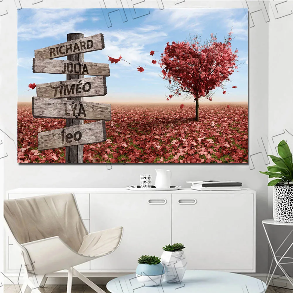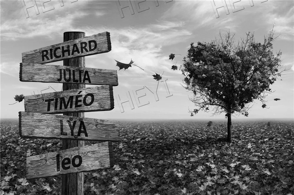 Настенная картина на заказ с именем на холсте Черно-белое сердце Дерево дорожный знак плакаты и принты семейные подарки на годовщину