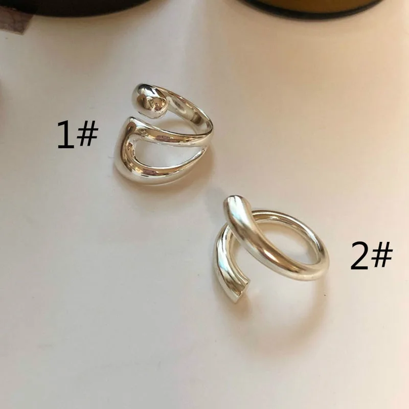 2022 минималистичные Простые открытые регулируемые серебряные кольц...