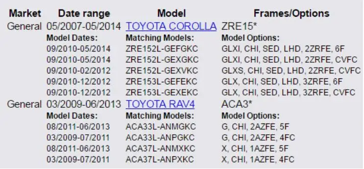ГодFor Toyota RAV4 2009-2013 Corolla 2007-2012