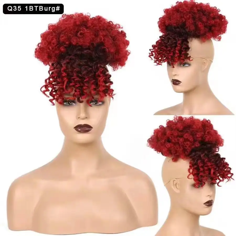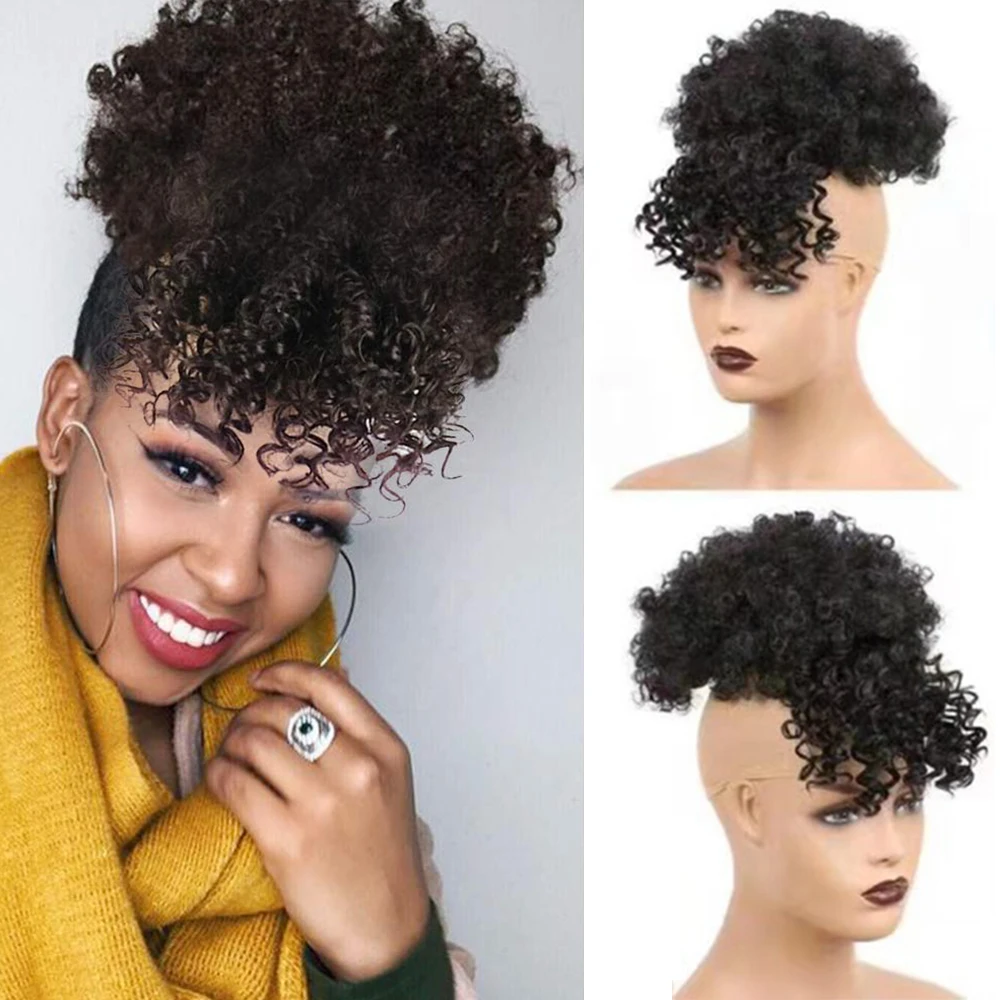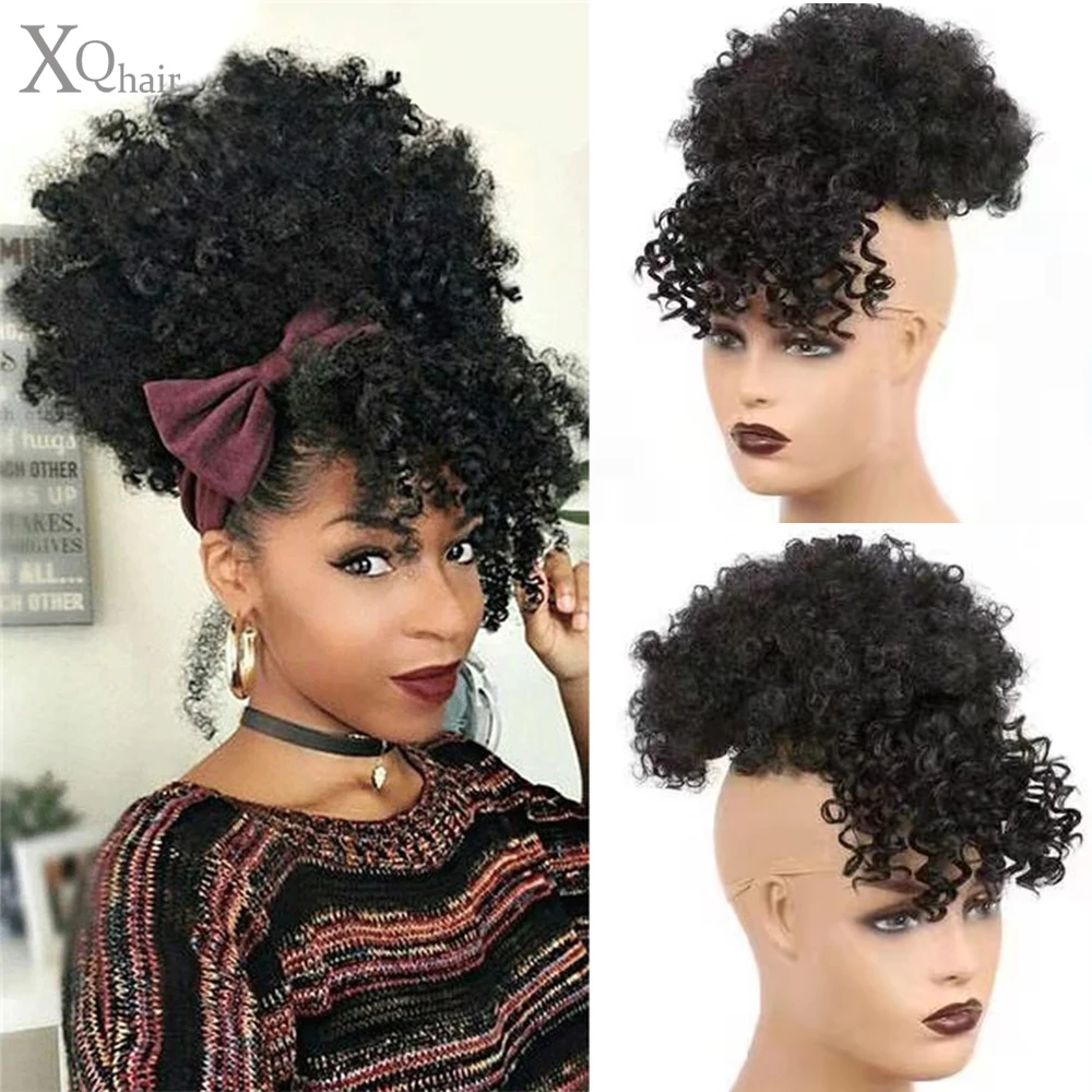 Афро пучок с челкой хвост накладные волосы афро-американский короткий афро кудрявый накладной Синтетический хвост со шнурком