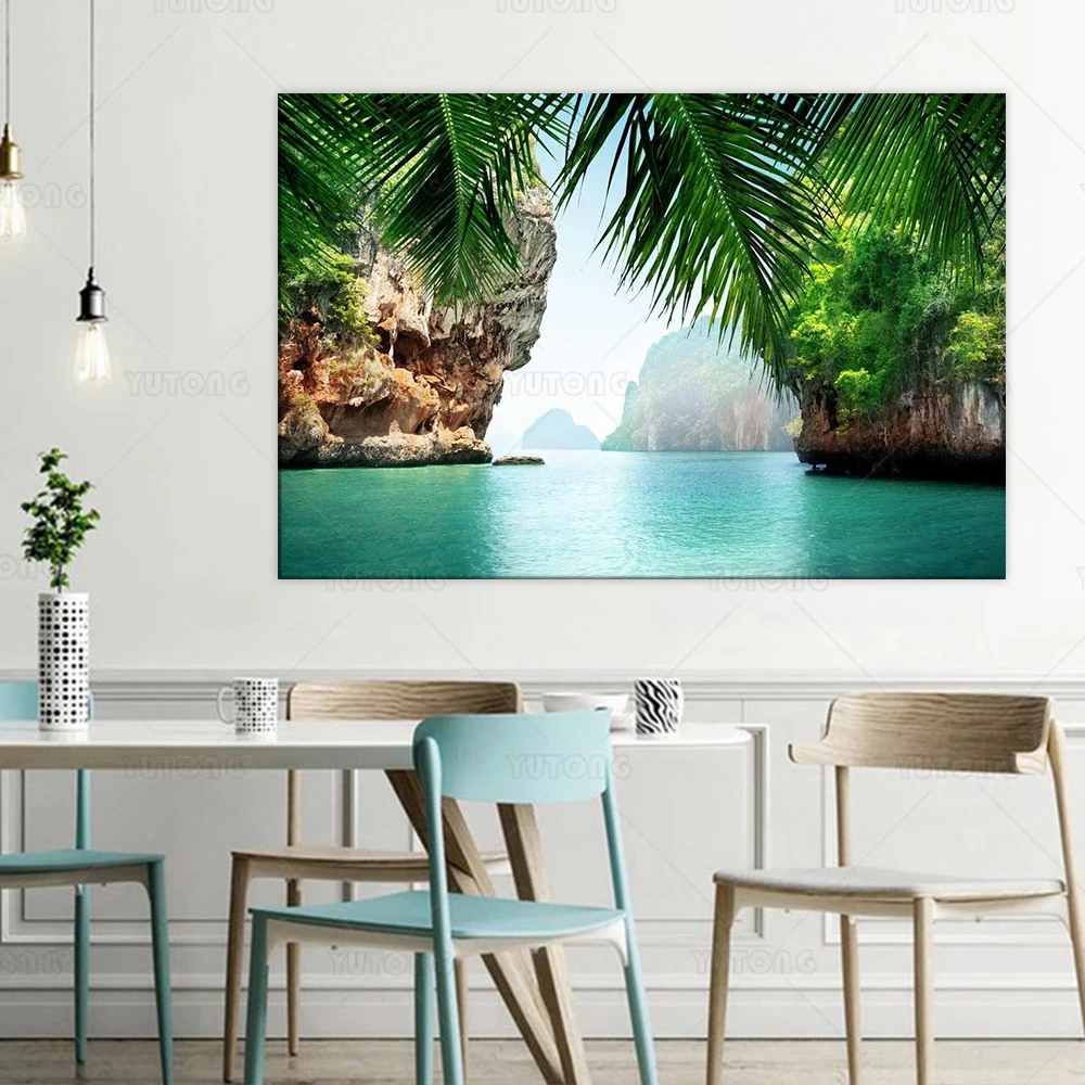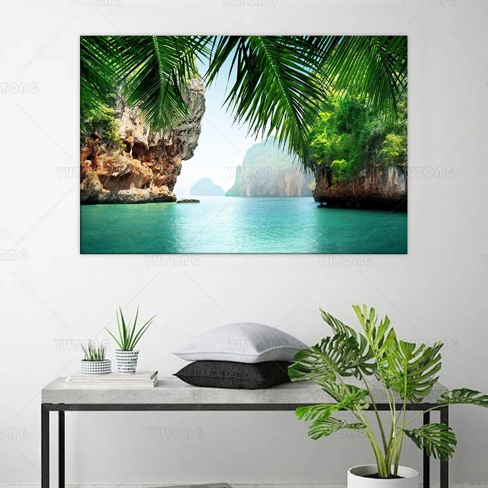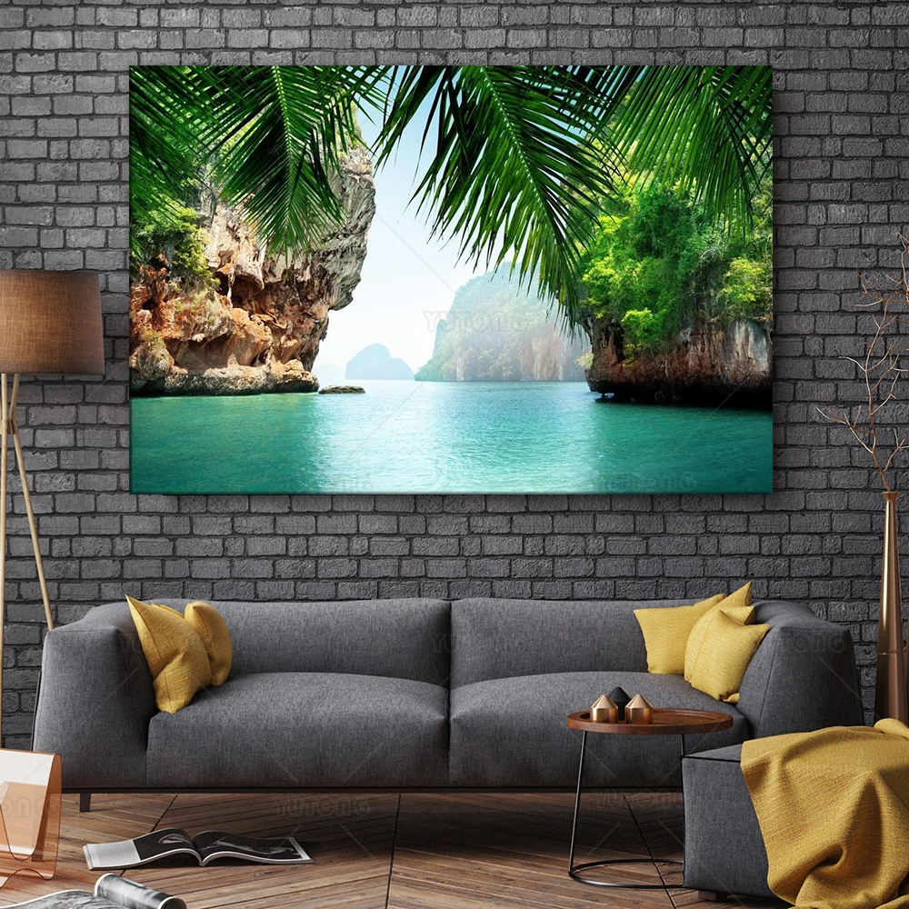 Пхукет, Таиланд, тропические морские скалы, остров, формирования, зеленая вода, пальмы, природный пейзаж, крутой Настенный декор, художественный печатный плакат