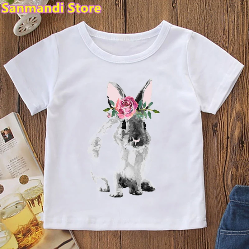 Футболка с забавным кроликом Банни любовью розовыми розами и принтом, летние топы для девочекмальчиков, кавайная детская одежда, рубашка в стиле Харадзюку