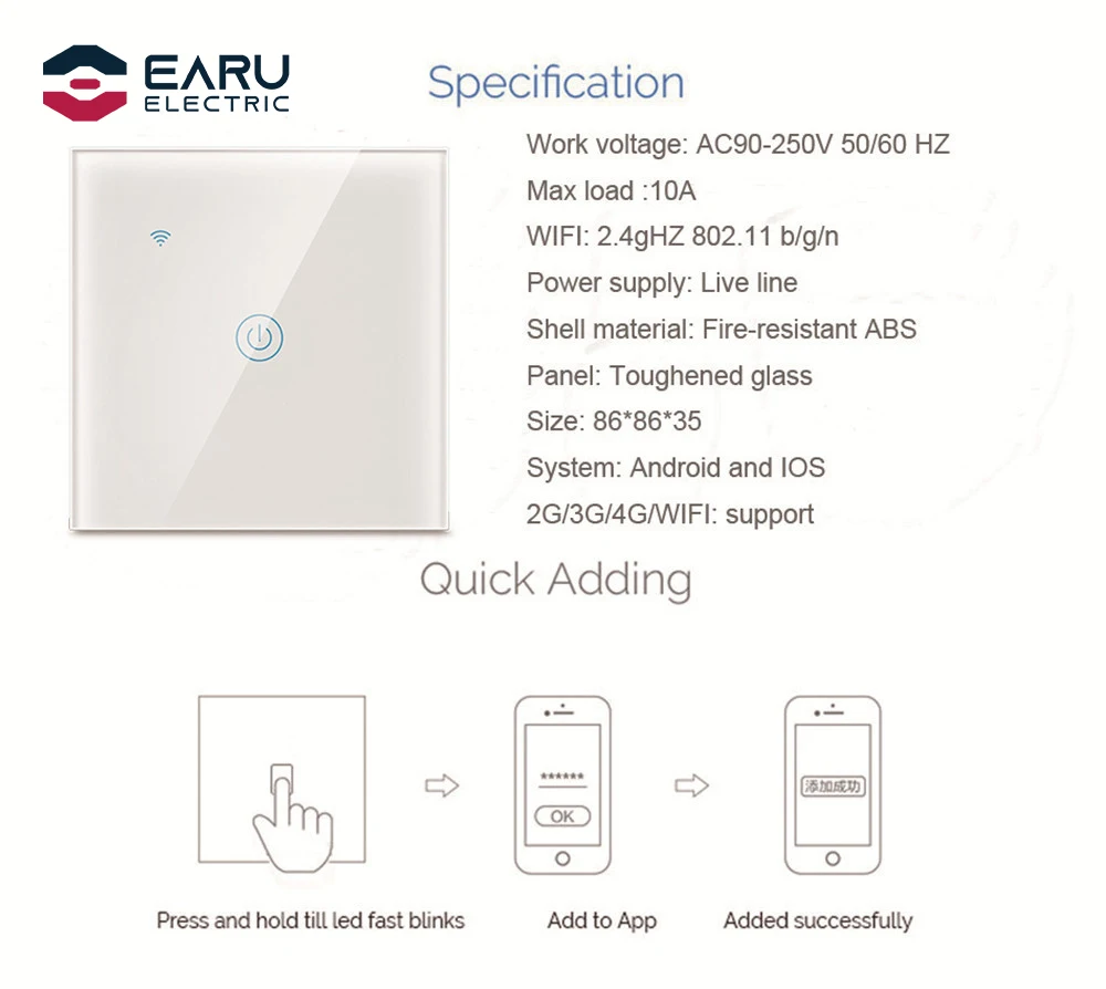Требуемая Номинальная мощность: 1-4Gang 60ow/Gang