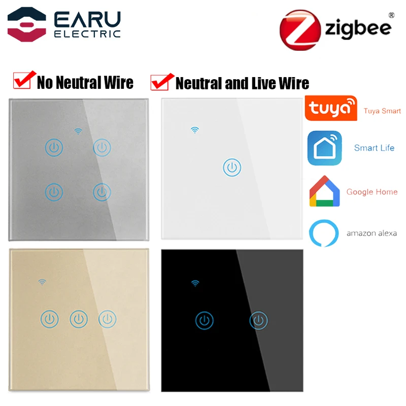 Умный настенный сенсорный выключатель Zigbee Tuya 1-4Way, ЕС сенсорные переключатели, подсветка для умного дома, с нейтральным проводом или без нейтрального провода