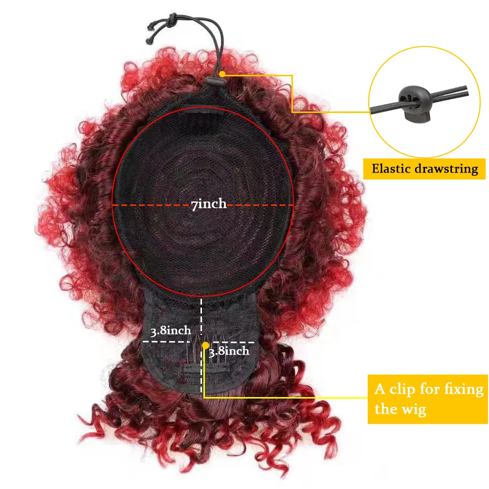 Афро-пуховка на шнурке с челкой, синтетический короткий кудрявый пучок волос на шнурке, хвост пони для черных женщин, зажим для волос