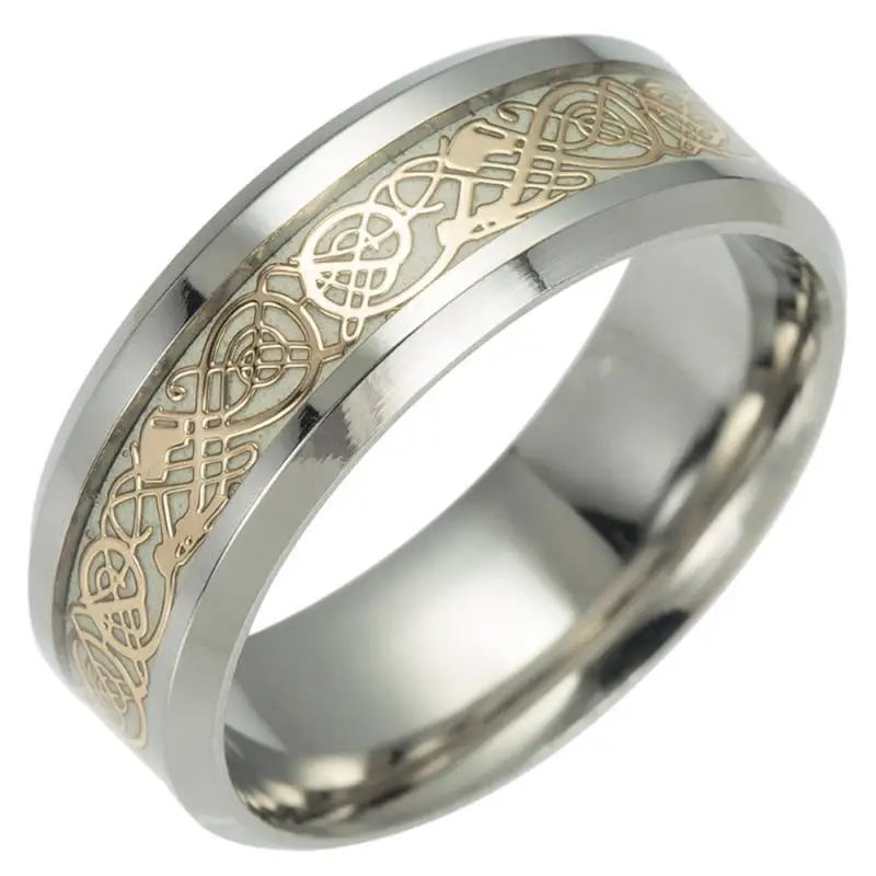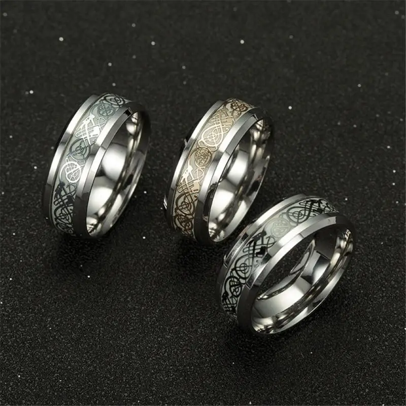 Светящиеся ювелирные изделия из глубокого золота 2021 пробы с инкрустированным китайским драконом на черном фоне, модное мужское люминесцентное кольцо в китайском стиле, подарок