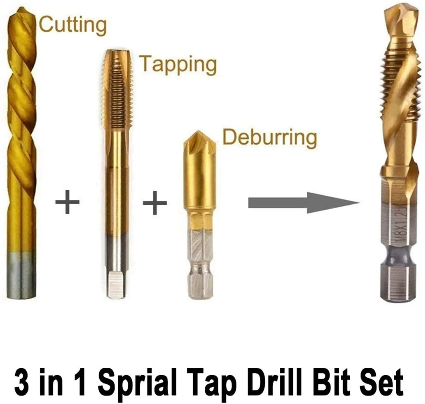 Материал: Высокоскоростная сталь (с титановым покрытием) Цвет: как показано на фотографии Шестигранный хвостовик: 6,35 мм (1/4 ") Стандарт: метрический Размер резьбы: M3, M4, M5, M6, M8, M10 Диаметр крана: m3x0.5мм, m4x0.7мм, m5x0.8мм, m6x1.0мм, m8x1.25мм, m10x1.5мм Используется: машина Функция: сверление Количество: 6 Посылка включает в себя: 6 сверл для крана Описание: Сверла для крана повышают эффективность работы, позволяя сверлить и нарезать резьбы за один проход. Эти сверла HSS и сверла-это отличные инструменты, используемые для создания винтовых нитей, для резки или формирования женской части сопрягаемой пары. Они используются на станке для нарезания резьбы, например токарный станок. Машинное нарезание с помощью этих кранов происходит быстрее и, как правило, более точно, потому что ошибка человека устранена.
