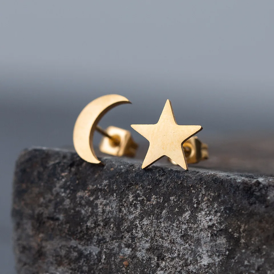 Серьги-гвоздики из нержавеющей стали, миниатюрные милые серьги в форме звезды, сердца, Луны, ананаса, короны, облака, колец, модные ювелирные украшения для вечеринок, подарок