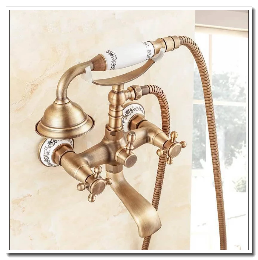 Vidric смеситель для ванны античная латунь с ручным душем настенный смеситель для ванны с двойным держателем кран Torneiras смеситель
