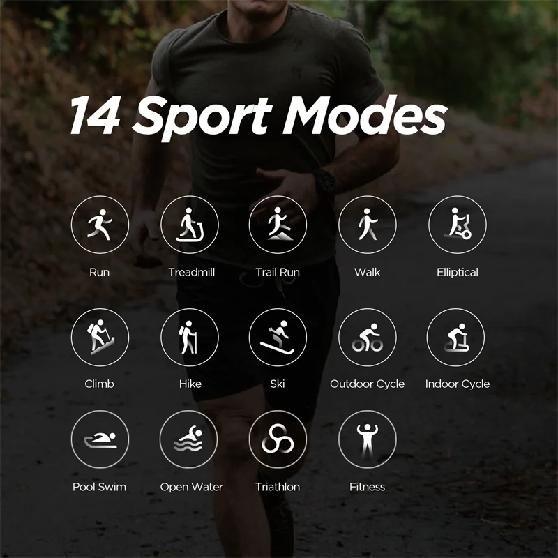 Размеры: 47,7X47,7X13,5 ммВес: 58 г (с ремешком)Материал корпуса: полимерные материалыВодонепроницаемость: 5 АТМ, поддерживает плаваниеЭкран дисплея: 1,3 "AMOLED, разрешение 360x360Сенсорный экран: стекло Corning Gorilla Glass 3 + покрытие против отпечатков пальцев