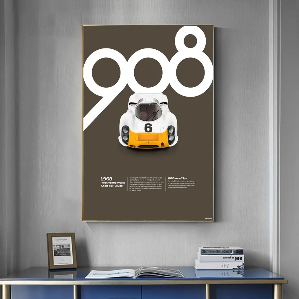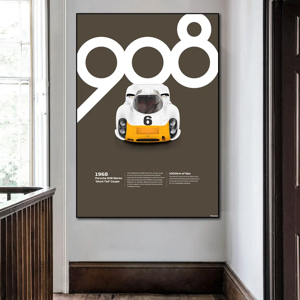 Постер для классического гоночного автомобиля с коротким шлейфом 908, Картина на холсте, домашний декор, Настенная картина для украшения гостиной