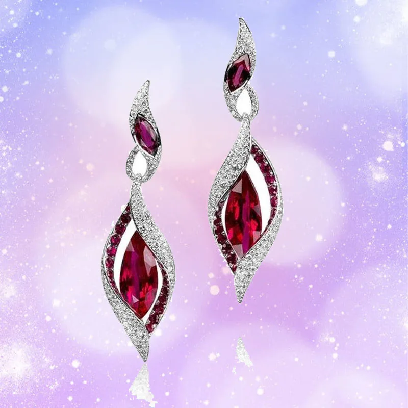 Красивые серьги-подвески с рубином, модная бижутерия, рождественски...