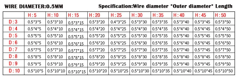 Пружина сжатия изготовлена из высококачественной пружинной стали, Анти-усталость, жесткий; Высокая прочность и долговечность. Различные размеры.
