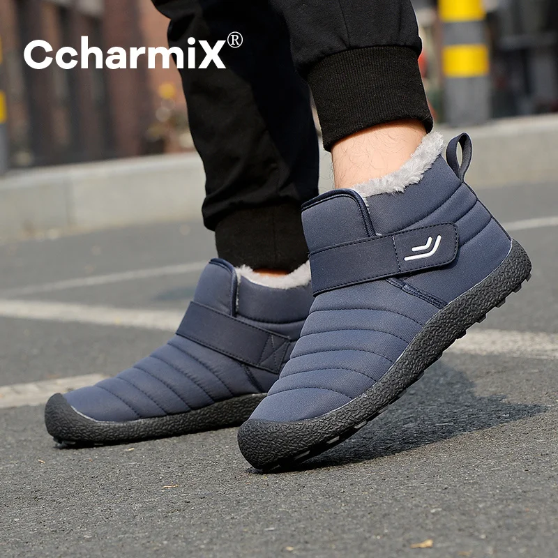 Новинка 2021, мужские ботинки, модные зимние ботинки для мужчин, зимние меховые ботинки, плюшевая мужская обувь, теплая водонепроницаемая мужская обувь