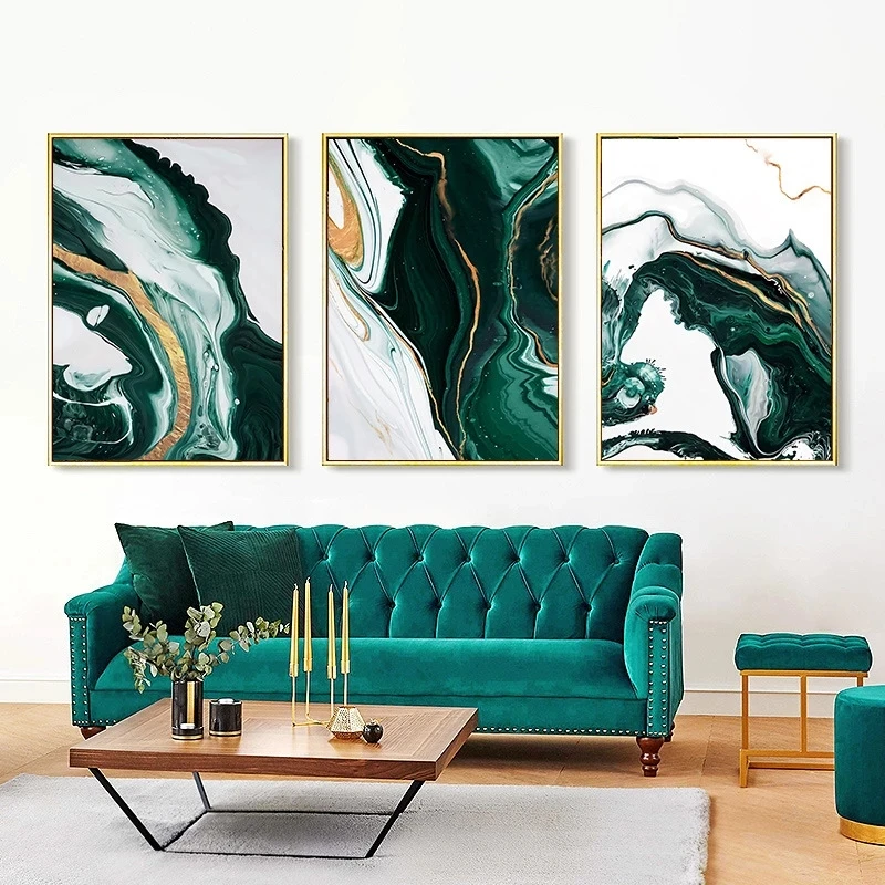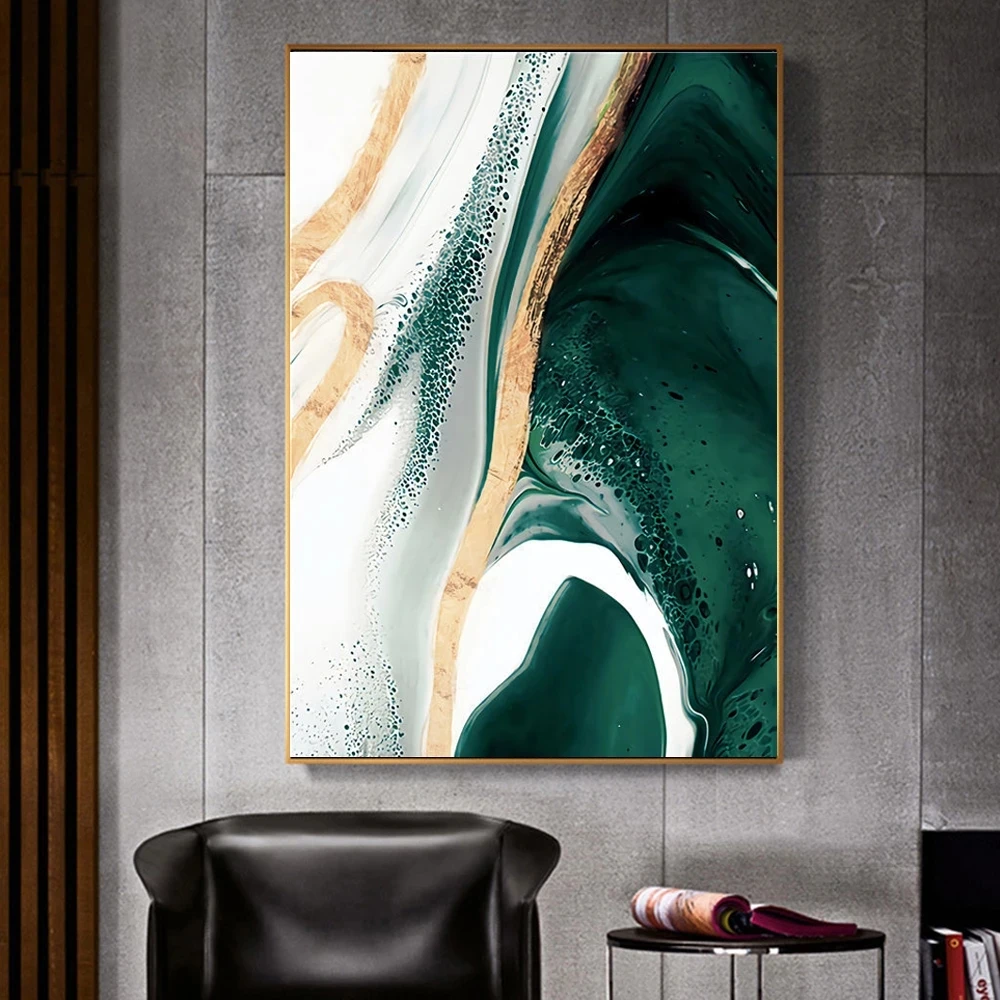 Картина на холсте, современные абстрактные картины, декоративные настенные постеры и принты для гостиной, золотой, зеленый, скандинавский художественный декор, домашний Лофт
