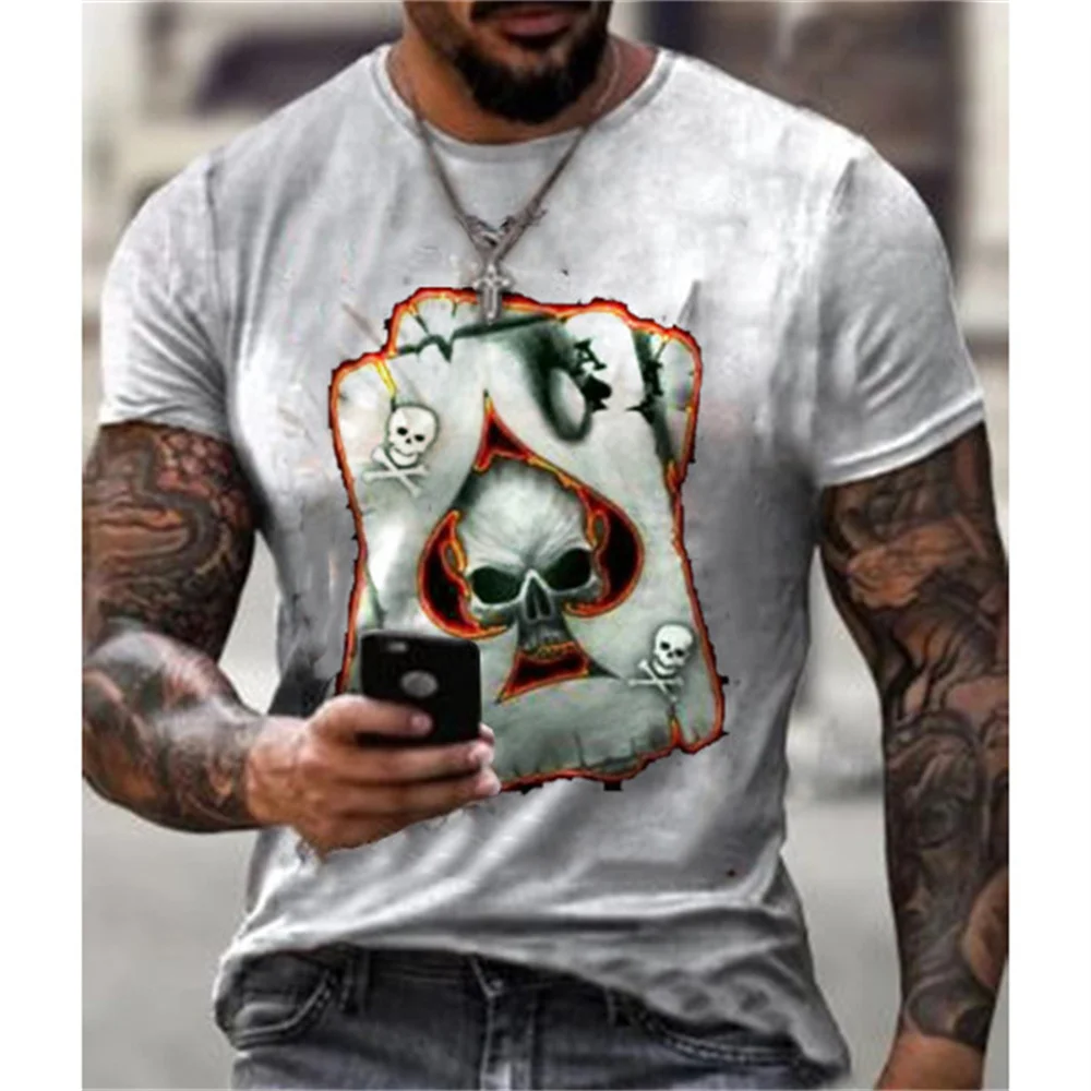Новинка 2021, летняя модная повседневная мужская футболка с 3D-принтом племени скелета, с круглым вырезом и коротким рукавом в стиле хип-хоп, 130-6XL