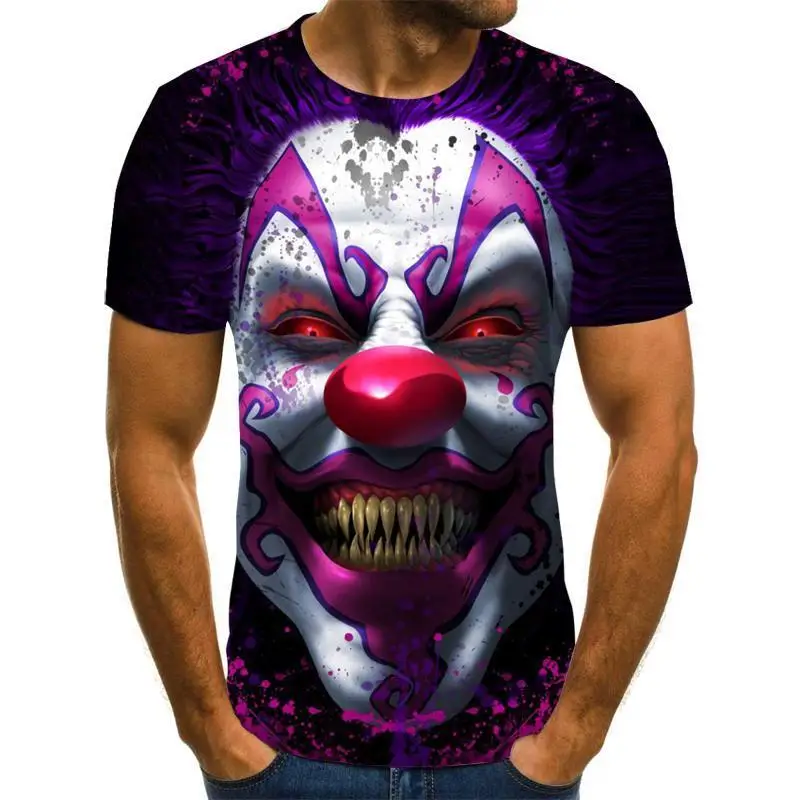 Мужская футболка с 3D-принтом клоуна, с круглым вырезом и коротким рукавом, 2020