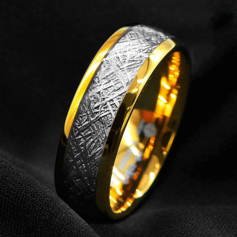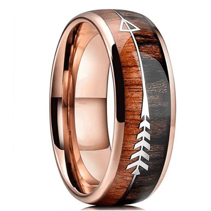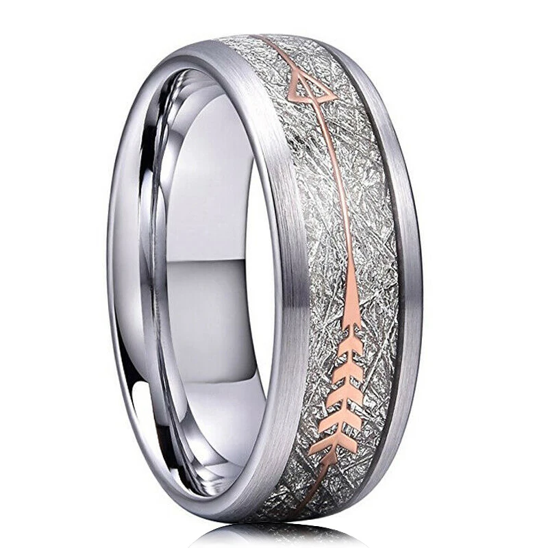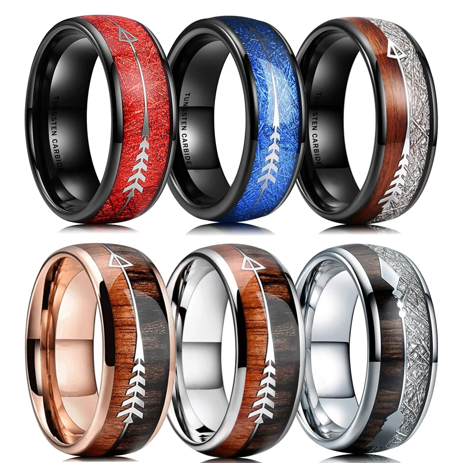 Простое мужское черное кольцо из карбида вольфрама с красным метеоритом Koa дерево инкрустация кольцо Серебряный цвет стрела купол полированный 8 мм мужской свадебный браслет