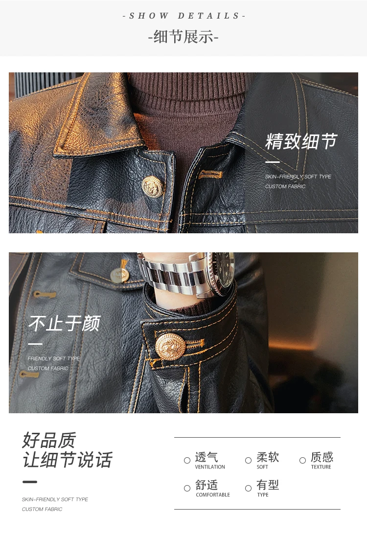 Кожаная куртка мужская черная кожаная куртка повседневная Корейская...
