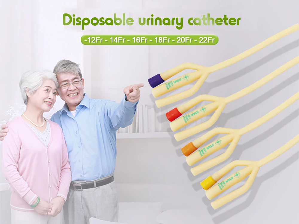 10 шт./пакетОдноразовый мочевой катетер, медицинская стерилизация, латексный катетер с двойной полостью, силиконовый катетер для мочи с мягким клапаном