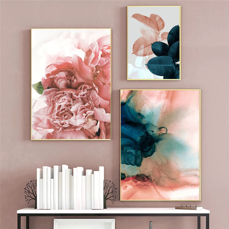 Абстрактный постер с розовыми зелеными цветами и листьями, Постер в скандинавском стиле, настенная живопись на холсте и Картина на холсте, украшение для гостиной