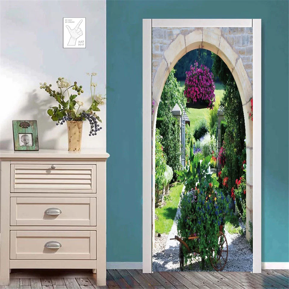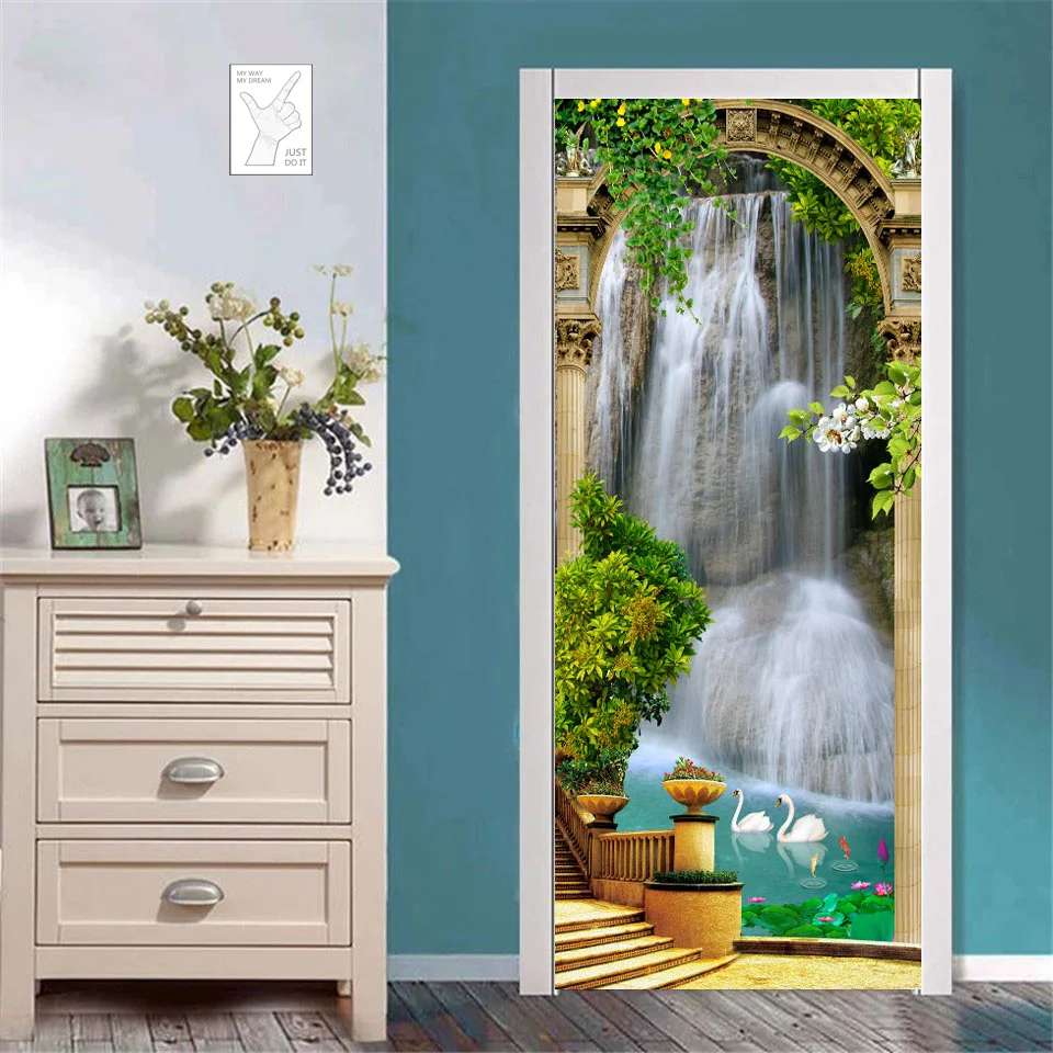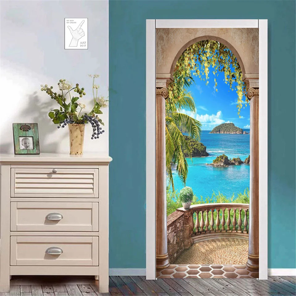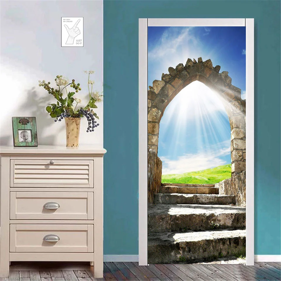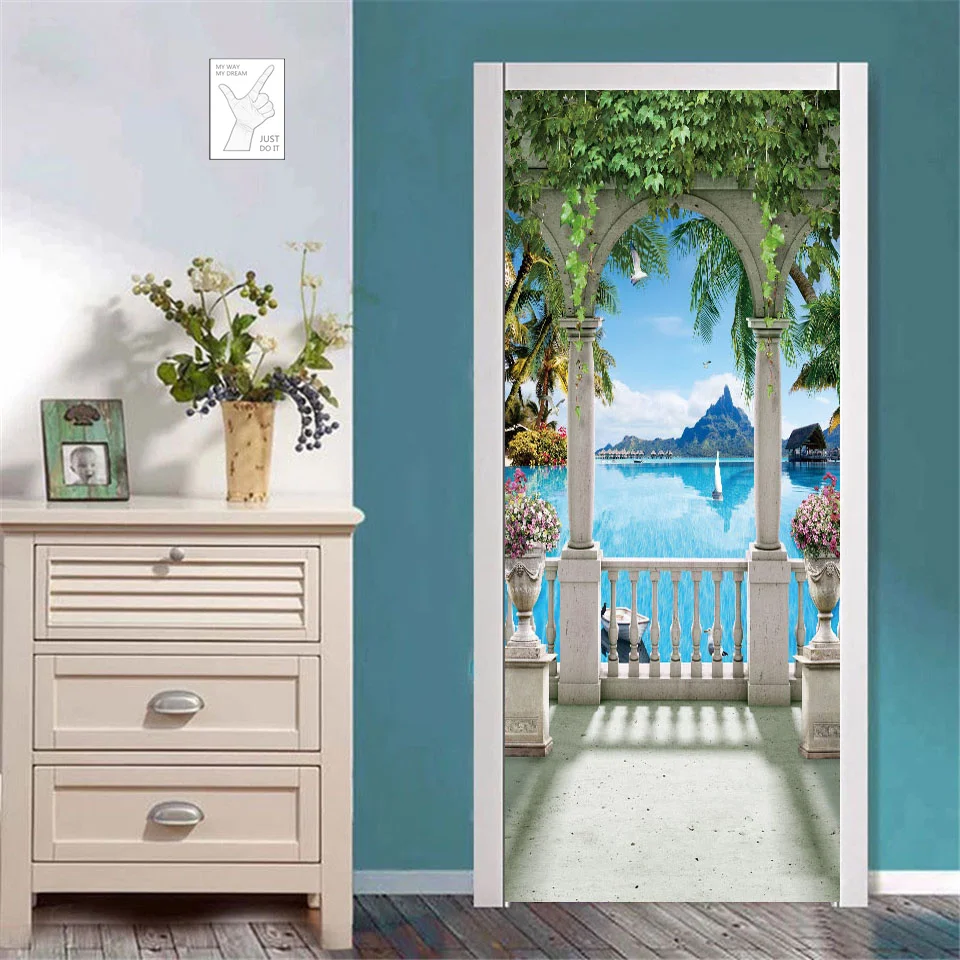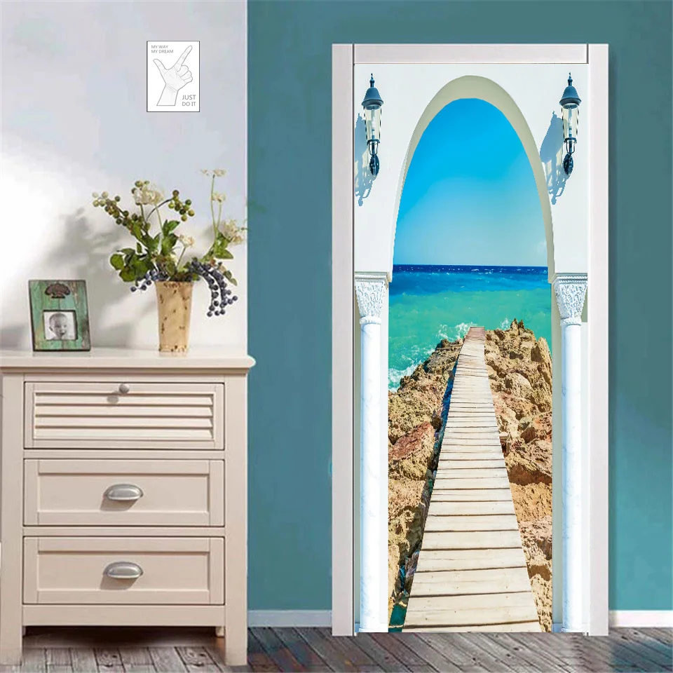 3d-наклейка на дверь из ПВХ, виниловые обои с отклеиванием и наклейкой, украшение для коридора, спальни, Настенная роспись, Индивидуальный размер, домашний дизайн, художественные наклейки на стену