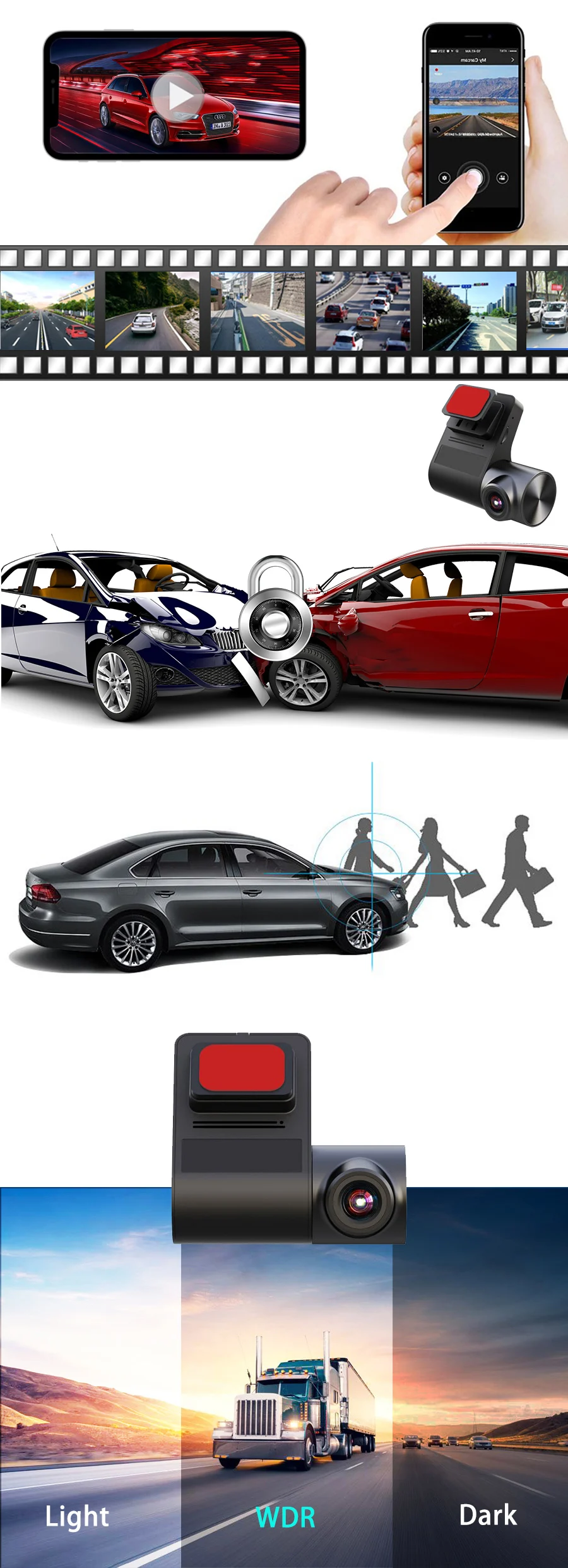 Скрытый Автомобильный видеорегистратор с USB, видеорегистратор 1080P с Wi-Fi и подключением, циклическая запись, G-сенсор, 170 широкий угол, видеорегистратор, видеорегистратор