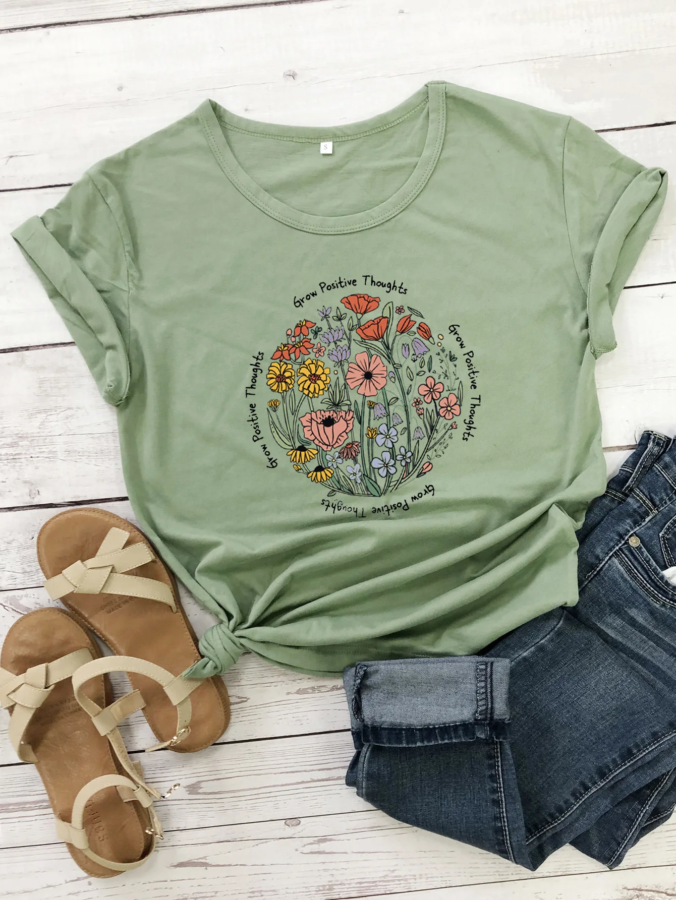 Футболка женская с рисунком диких цветов, 100% хлопок