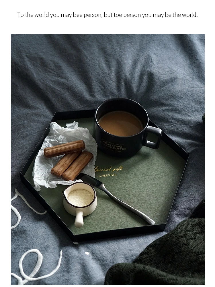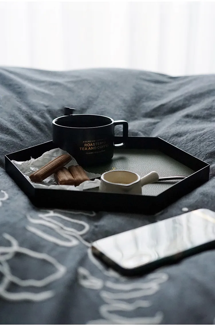 Поднос в стиле Моранди, черный, с кожаным ковриком, железная тарелк...