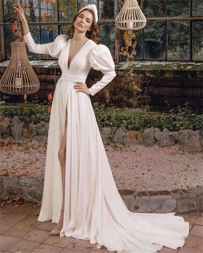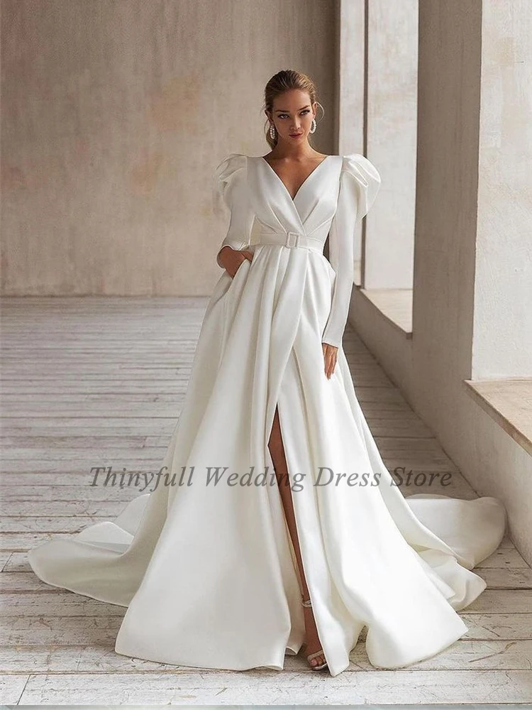 Классические длинные богемные Свадебные платья а-силуэта с поясом и длинными рукавами для принцессы, пляжные свадебные платья, лиф, свадебное платье