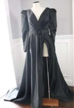 Вечернее платье с длинным шлейфом, одним рукавом, с длинными рукава...