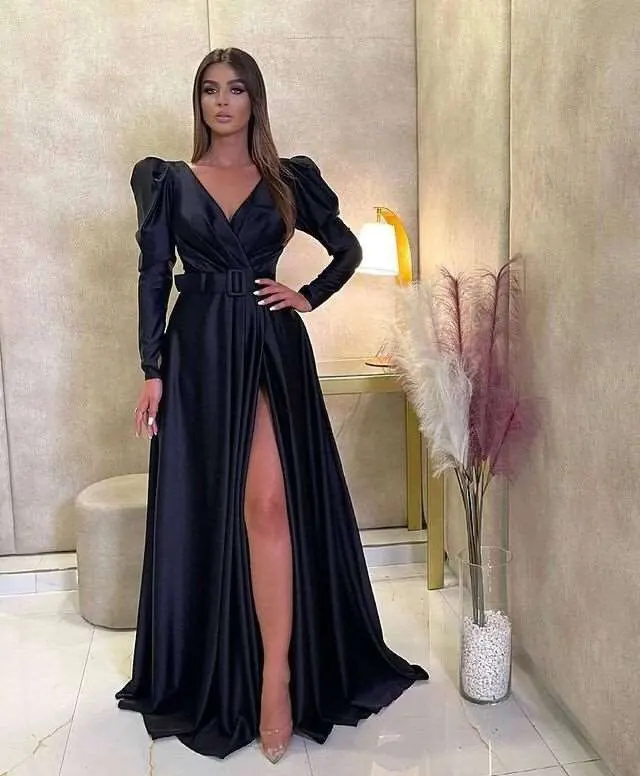 Женское вечернее платье с высоким разрезом, длинное синее платье в ...