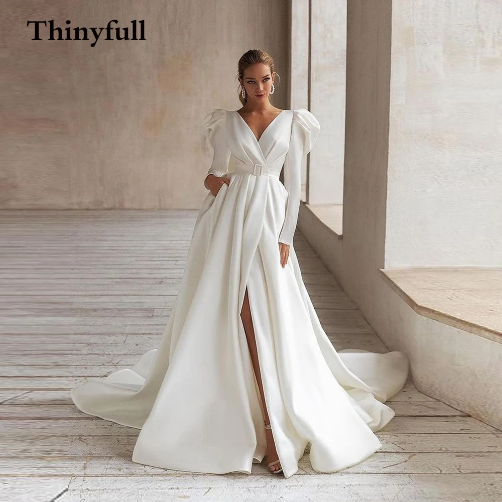 Tinyfull, простое шелковое искусственное свадебное платье со съемны...