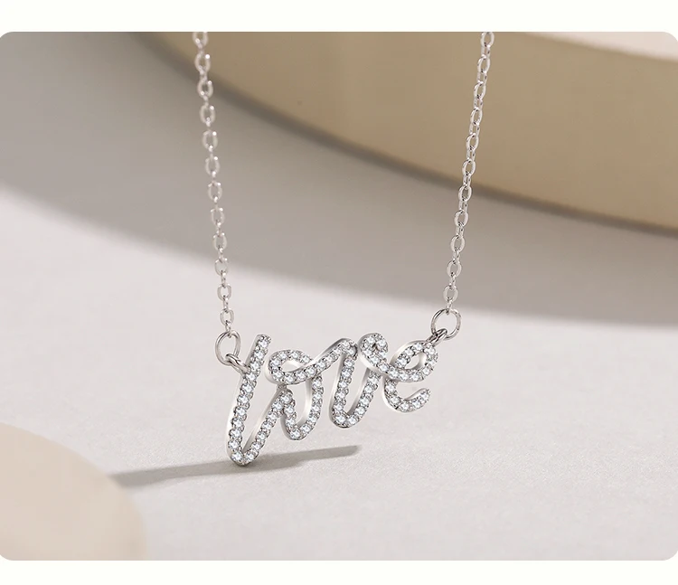 Женское ожерелье из серебра 925 пробы с кулоном в виде надписи Love
